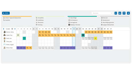 Ob Produktion, Pflege, Einzelhandel oder Büro – der Personaleinsatz muss geplant, abgestimmt und angepasst werden. HRlab bietet Ihnen eine intuitive Lösung für die digitale Einsatz- und Schichtplanung, die alle relevanten Faktoren berücksichtigt: Verfügbarkeiten, Qualifikationen, Arbeitszeitmodelle und gesetzliche Vorgaben.